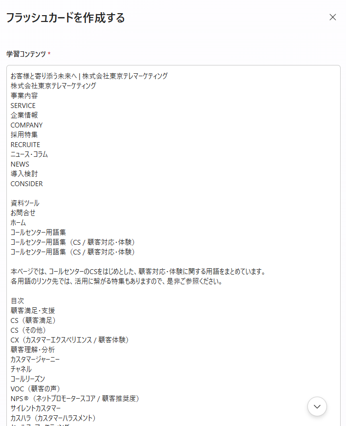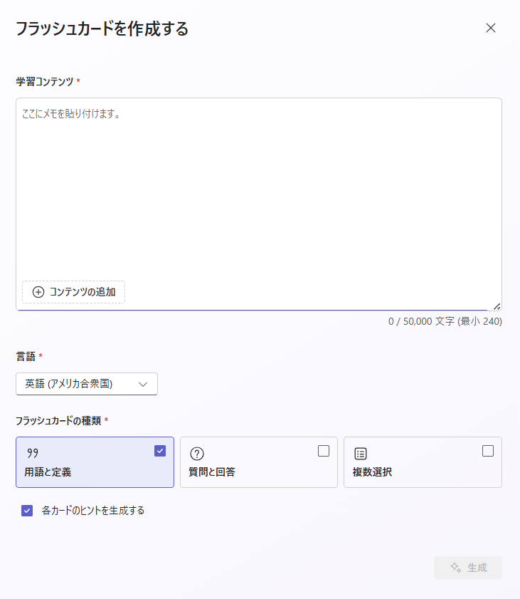 学習コンテンツから、フラッシュカードを作成する