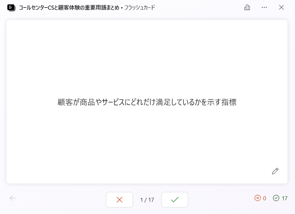 フラッシュカード(用語と定義)の場合