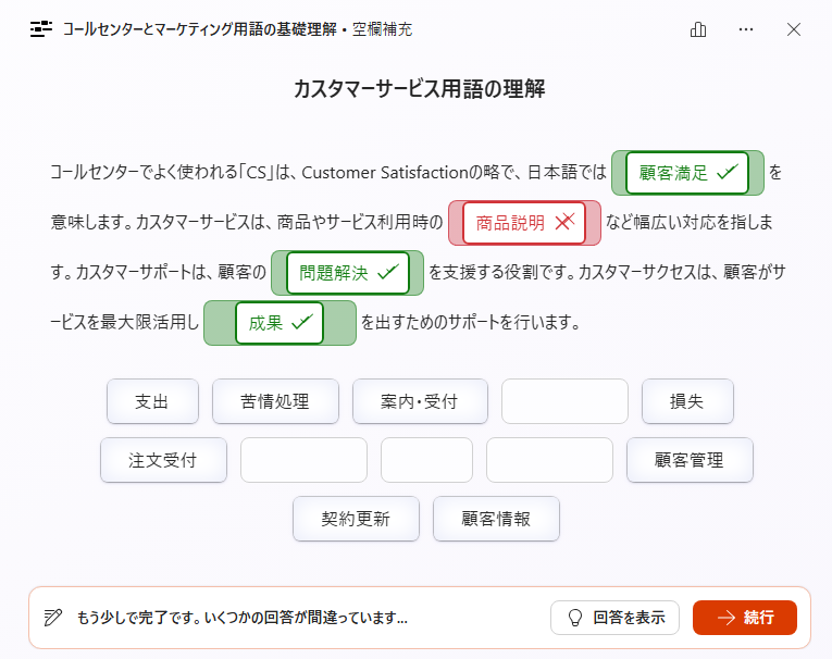 穴埋め問題を確認・調整し、完成させる